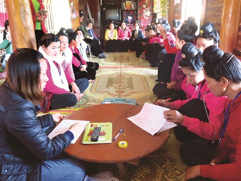 La scène se déroule dans une maison sur pilotis au village de Phang 1, commune de Muong Phang, dans la province montagneuse de Diên Biên (Nord). Une trentaine de femmes de l’ethnie Thai sont assises en tailleur pour une réunion du groupe "Économies financières". Il s’agit d’un des groupes de représentantes des femmes issues d’ethnies minoritaires qui participent au projet d’informations agro-climatiques (ACIS), réalisé depuis 2015 par l’organisation CARE international au Vietnam et le Centre de développement communautaire (CCD).