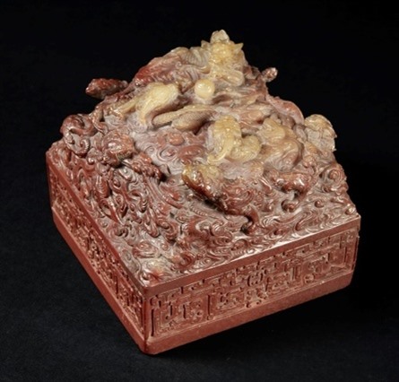 Il y a ensuite la qualité de la stéatite (pierre à savon), une des pierres les plus précieuses à cette époque pour les cachets. Provenant de la ville de Shou Shan dans la province du Fujian (Sud-Est de la Chine), celle de l'exemplaire vendu à Paris est "très rouge, presque +sang de poulet+", souligne Alice Jossaume.