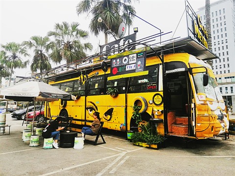 | Situé dans l'arrondissement de Hà Dông à Hanoï, le Hanoi Bus Café est aménagé dans un vieux bus. |