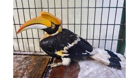 | Le calao bicorne sera relâché dans la nature par le Parc national de Bach Ma. |