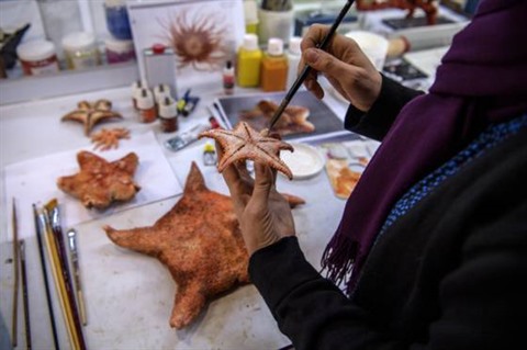 | Un employé du Muséum d'histoire naturelle de Paris peint une étoile de mer dans l'atelier des taxidermistes le 12 mars. |