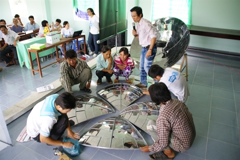 Les habitants du village d’An Ngai Tây, district de Ba Tri, province de Bên Tre apprennent à assemblerl les cuisinières à énergie solaire