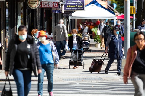 | Les gens portent des masques pour prévenir l'infection au COVID-19 à New York, États-Unis, le 8 octobre. |