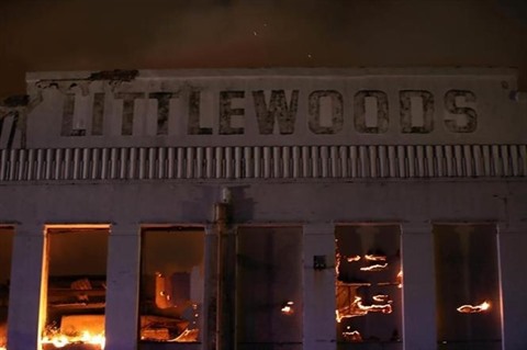| Lieux de l'incendie à un célèbre bâtiment Art déco de Liverpool (Nord de l'Angleterre), le 2 septembre. |