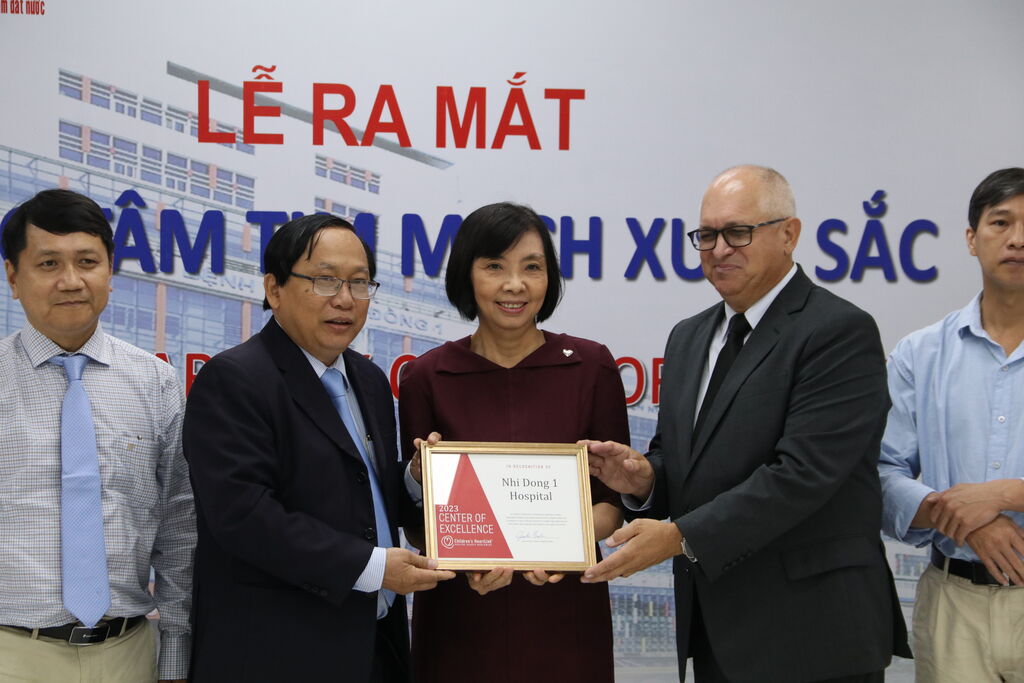 | Un représentant de l'organisation Children's HeartLink décerne le certificat d'excellence au Centre de chirurgie cardio-vasculaire de l’Hôpital pédiatrique numéro 1 de Hô Chi Minh-Ville. |