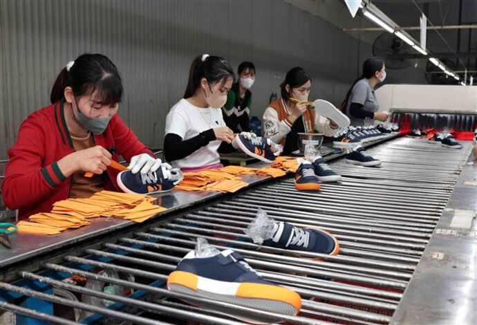 | Production de chaussures destinées à l'exportation vers les marchés américain et européen, dans la Société de fibres textiles et chimiques de Hà Tây. |