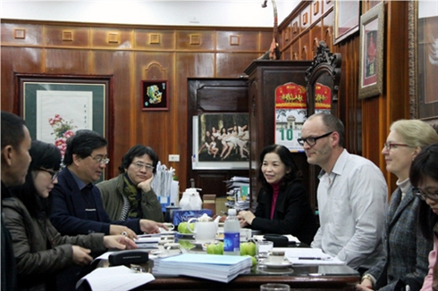 | Une séance de travail de l’Allemand Dominik Gunther avec les artistes du Théâtre de la jeunesse (Hanoi). |