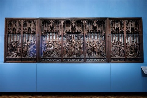 | "Le retable de Saint-Georges" (1493) du sculpteur Jan Borman retrouve sa place au Musée d'Art et d'Histoire de Bruxelles après une restauration exceptionnelle, le 23 avril. |