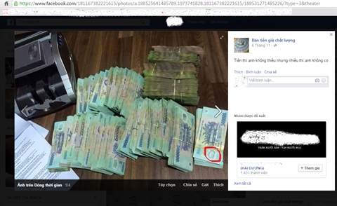 Sur la page «Ban tiên gia uy tin chât luong 100%» (Vente de fausse monnaie de prestigieuse qualité garantie à 100%), son titulaire a publié de nombreuses photos de billets en polymer contrefaits de 50.000, 100.000, 200.000 et 500.000 dôngs. Les billets sont en liasses, étalées sur une table, avec des messages publicitaires tels que «Ressembler à 99% aux vrais», «Qui veut acheter des faux billets pour améliorer la vie, aider la famille, dépenser pendant le Têt... Achetez chez nous ! Ceux qui achètent pour plus de deux millions de dôngs se verront offrir d’un à trois millions de dôngs»... Avec de telles annonces, plusieurs personnes ont effectué de telles transactions.