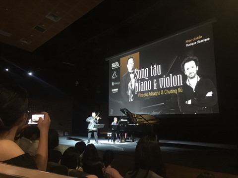 Lors du concert Duo piano-violon par Vincent Adragna et Chuong Vu, tenu le 18 mai à Hanoï.