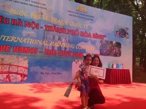 Pour sa part, la Vietnamienne Dang Phuong Mai, inscrite à l’École primaire de Dich Vong B, à Hanoi, s’est dite très heureuse de participer à cette manifestation : «C’est une occasion de rencontrer et d’échanger avec les amis étrangers. Ma peinture montre la tour de la Tortue au milieu du lac de l’Épée restituée. J’ai voulu exprimer l’amour des enfants vietnamiens envers de la capitale».