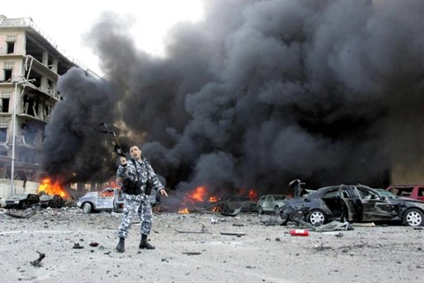 | L'attentat contre le Premier ministre libanais Rafic Hariri à Beyrouth, le 14 février 2005. |
