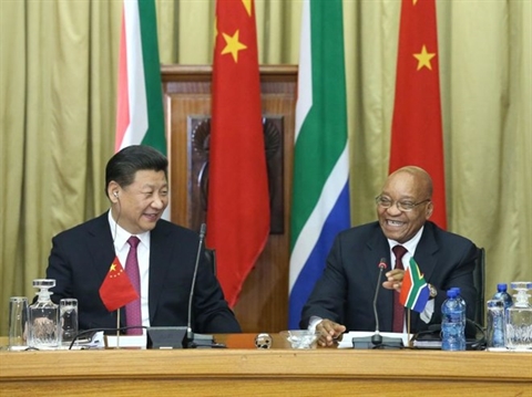 | Le président sud-africain Jacob Zuma (droite) a eu un entretien le 2 décembre avec son homologue chinois Xi Jinping en Afrique du Sud. |