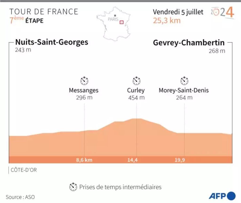 | Présentation du profil de l'étape 7 du Tour de France le 5 juillet entre Nuits-Saint-Georges et Gevrey-Chambertin. |