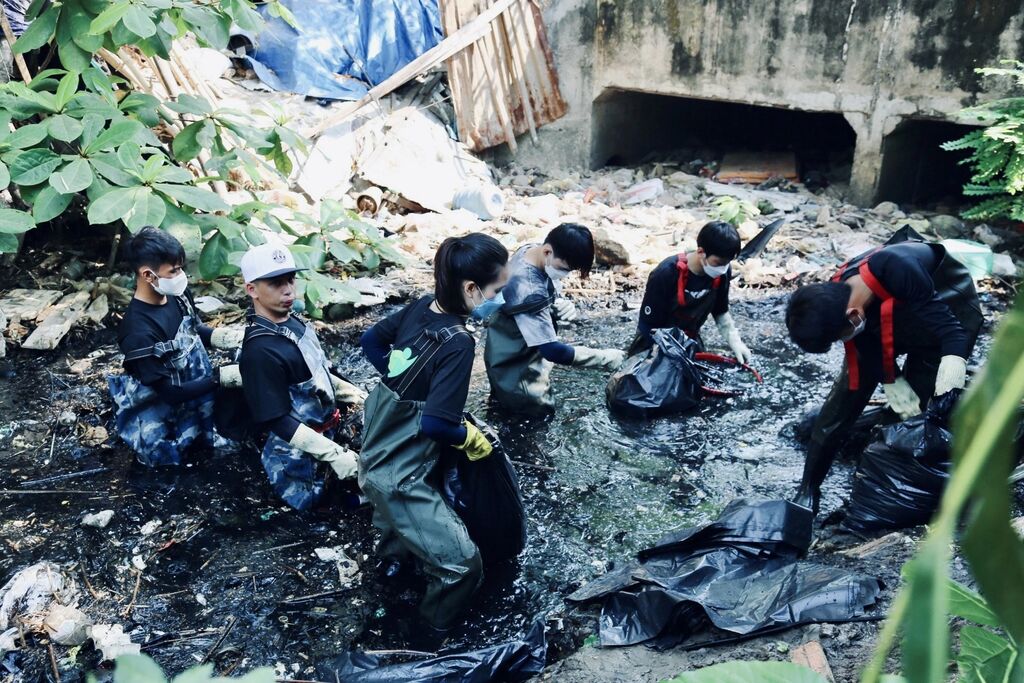 | Membres de Sài Gon Xanh collectant des ordures dans un canal à Hô Chi Minh-Ville. |