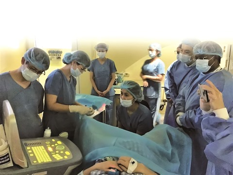 | Mme Lan (assise) et son équipe lors d’un cas de FIV. |