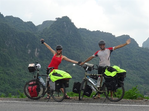 | Le couple part en route vers le Parc national de Cúc Phuong, dans la province de Ninh Binh (Nord). Photo : Nathalie et Luc/CVN |