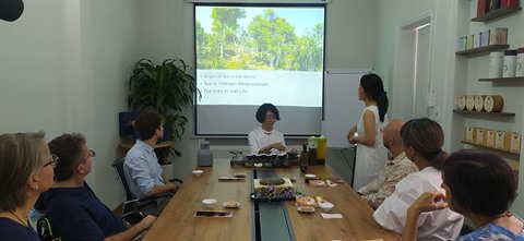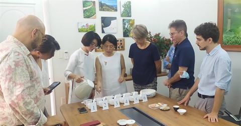| Les participants du cours d’art du thé apprennent à distinguer les catégories du thé et la saveur des thés vietnamiens. |