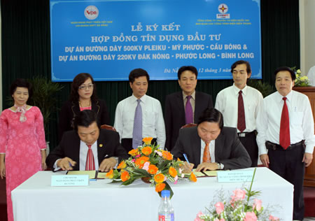 Le projet de 220 kV Dak Nông-Phuoc Long-Binh Long, quant à lui, dispose d'un montant total de 1.389 milliards de dôngs, dont 100 milliards de dôngs prêtés par la Banque de développement du Vietnam et 928 milliards de dôngs par la Banque d'investissement et de Développement du Vietnam. Ce projet a été mis en chantier en septembre 2011 et achèvera à la fin de cette année.