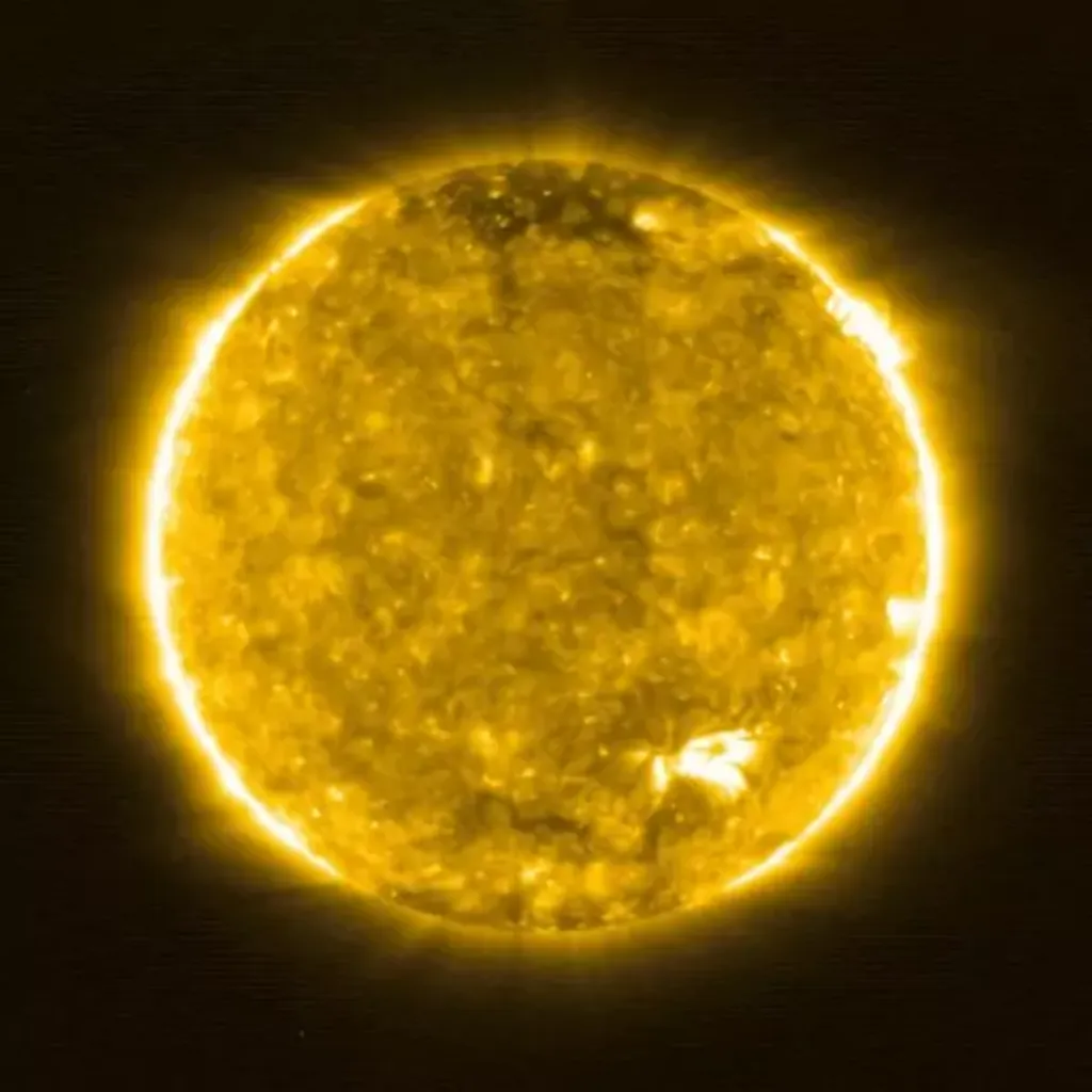 | Photo du Soleil prise par l'Imageur en extrême ultraviolet de la sonde Solar Orbiter de l'Agence spatiale européenne, distribuée par l'ESA, le 16 juillet 2020. |
