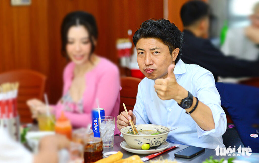 "Le pho est délicieux et j’adore sa diversité, que ce soit le pho au bœuf ou le pho au poulet. Ce plat est emblématique de la gastronomie vietnamienne au Japon", a affirmé ce grand amateur japonais du pho. "Je ne connais pas les multiples facettes de la gastronomie pour évaluer les types de pho mais j'ai trouvé le pho Thin particulier, il se différencie des autres labels", a-t-il confié.
