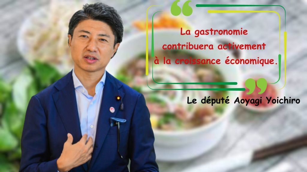 "La culture gastronomique du Vietnam est aussi intéressante avec des plats de renommée mondial tels que le pho, le banh mi, le chè… Je pense que votre pays pourrait se renseigner sur la manière de faire du Japon, en vue de présenter les plats vietnamiens ailleurs. La gastronomie contribuera activement à la croissance économique dans le contexte actuel", a fait part le député qui ne cache pas son "grand amour pour les spécialités culinaires" du pays en forme de S.