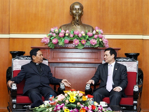 | Le vice-président du Comité central du Front de la Patrie du Vietnam, Lê Ba Trinh (droite), reçoit le 16 janvier à Hanoi le pasteur Diêu Boi, président du Conseil d’administration de l’Église presbytérienne du Vietnam. |