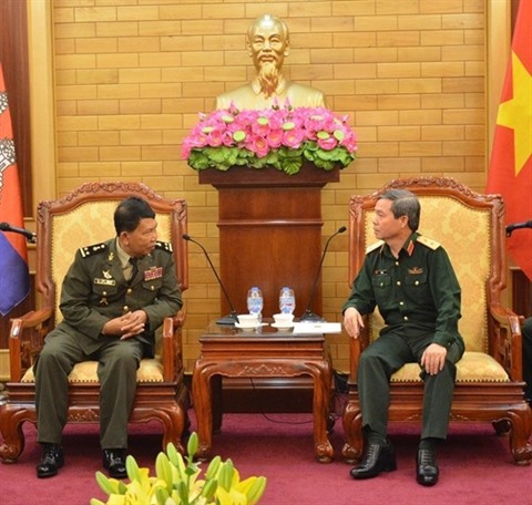 | Le général de division Dô Cân (droite) et le général de division Bin Rathmoni, vice-président du Tribunal militaire cambodgien, le 27 novembre à Hanoï. |
