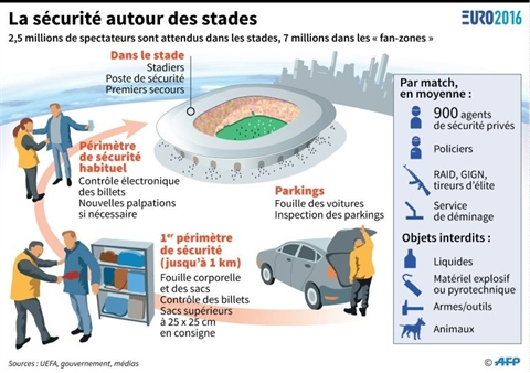 Côté sécurité privée, le responsable de la sécurité de l'Euro Ziad Khoury, a estimé que "le vivier humain mobilisé sur la compétition va se situer entre 10 et 15.000 agents" au total.