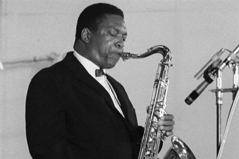 | Photo non datée du saxophoniste ténor américain John Coltrane en concert à Paris. |