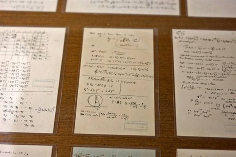 | Des pages manuscrites du physicien Albert Einstein sont exposées à l'Université hébraïque de Jérusalem, le 6 mars. |