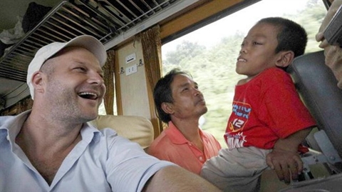 | L'auteur du documentaire, Philipp Abresch, et le garçon de 15 ans Long Thành, une des victimes vietnamiennes de l'agent orange/dioxine. |
