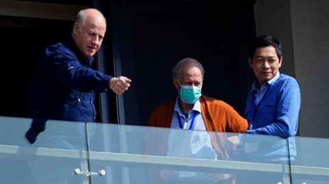 | Le Docteur Nguyên Viêt Hùng (droite) et deux experts de l'OMS à Wuhan (Chine). |