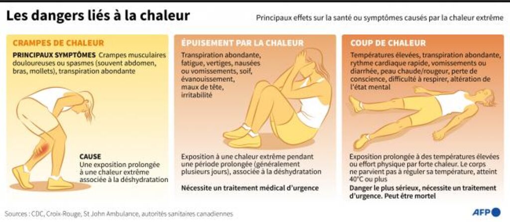 | Graphique sur les symptômes les plus courants et les effets sur la santé causés par la chaleur extrême. |