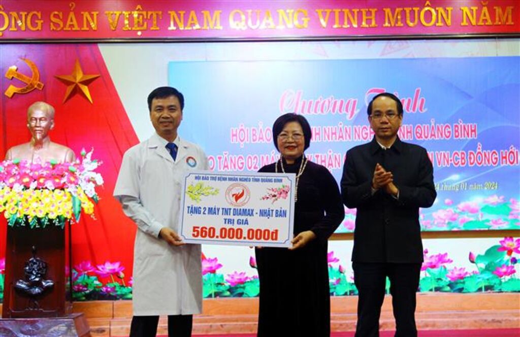 | Le directeur de l’Hôpital d’amitié Vietnam - Cuba de Dông Hoi, Nguyên Duc Cuong (gauche), réceptionne le don de deux appareils d’hémodialyse, à Quang Binh, le 24 janvier. |