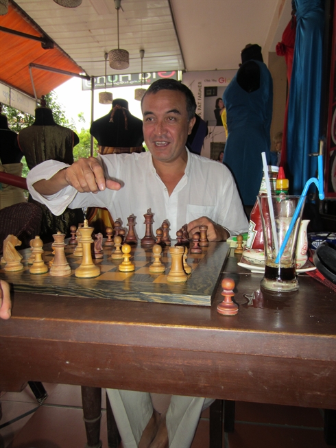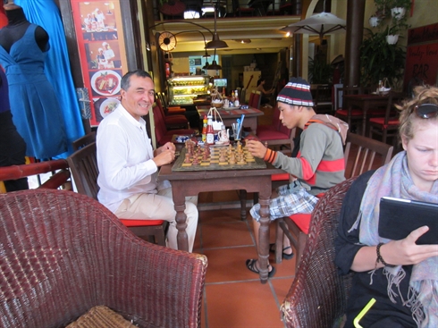 On l’a bien compris, le propriétaire du restaurant Voulez-Vous est, en plus d’un grand voyageur, un grand joueur d’échecs. Et le meilleur à Hôi An, à «égalité avec M. Jildas du Diving Center». Mais sa «finalité» est d’attirer les touristes à pratiquer ce magnifique jeu de stratégie. Le Voulez-Vous est un «restaurant où nous avons aimé nous ressourcer avec les enfants entre nos excursions. Le propriétaire est un Français sympa, fou d’échecs. Les tournois avec mon mari et mon fils seront de merveilleux souvenirs, imprévus au programme. À ne pas rater surtout…», a écrit une touriste de Senlis, une commune française, sur tripadvisor.fr, le plus grand forum de voyage au monde.