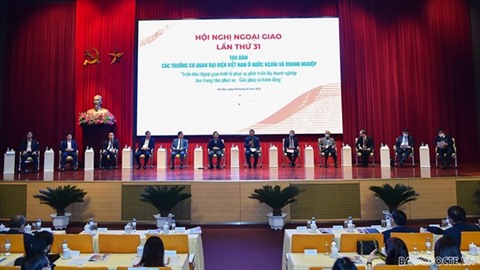 Placé sur le thème "Mettre en œuvre la diplomatie économique au service du développement centré sur les entreprises - solutions et actions", l'événement a réuni près de 70 chefs des représentations vietnamiennes à l'étranger, des ambassadeurs nouvellement nommés, des consuls généraux, des dirigeants de ministères et de secteurs, et plus de 120 dirigeants et représentants d'associations, de sociétés et d'entreprises à travers le pays.