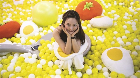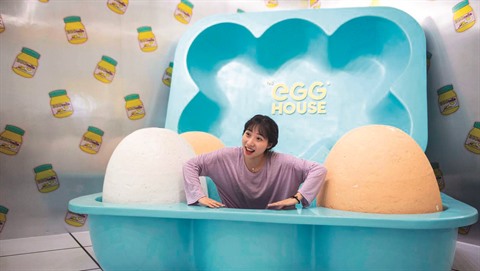 Située au troisième étage d'un centre commercial de la ville, "La maison de l'œuf" est l'œuvre du créateur chinois Xu Biubiu et la deuxième installation de ce type, après celle de New York, aux État-Unis. Une troisième est prévue en novembre prochain à Los Angeles. Il en coûte 198 yuans, soit 29 dollars, à deux adultes pour entrer. Et les visiteurs s'adonnent avec frénésie à l'intérieur à la photo et aux selfies.