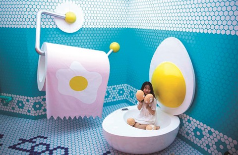 | Une installation qui se veut conçue pour partager l’amour universel des œufs. |