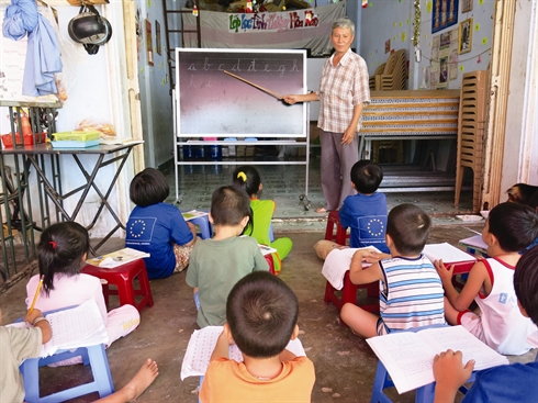 Doàn Minh Hùng (52 ans) et sa femme Nguyên Thi Kim Chi vivent dans l’arrondissement de Binh Tân à Hô Chi Minh-Ville. Chaque jour, 90 élèves suivent sa classe. Tous ont un niveau différent : 80% apprennent les lettres, et les autres, l’enseignement général. M. Hùng et sa femme ont recueilli chez eux 14 enfants orphelins âgés de 4 à 12 ans. Ces petits prennent part à plusieurs activités pour le gagne-pain : ils vendent des billets de loterie, ramassent des sacs plastiques, servent le café et des plats à l’auberge... Le couple s’occupe aussi de six autres enfants qui ont perdu un de leurs parents ; permettant ainsi à leur père ou leur mère de travailler dans la journée pour gagner leur vie.