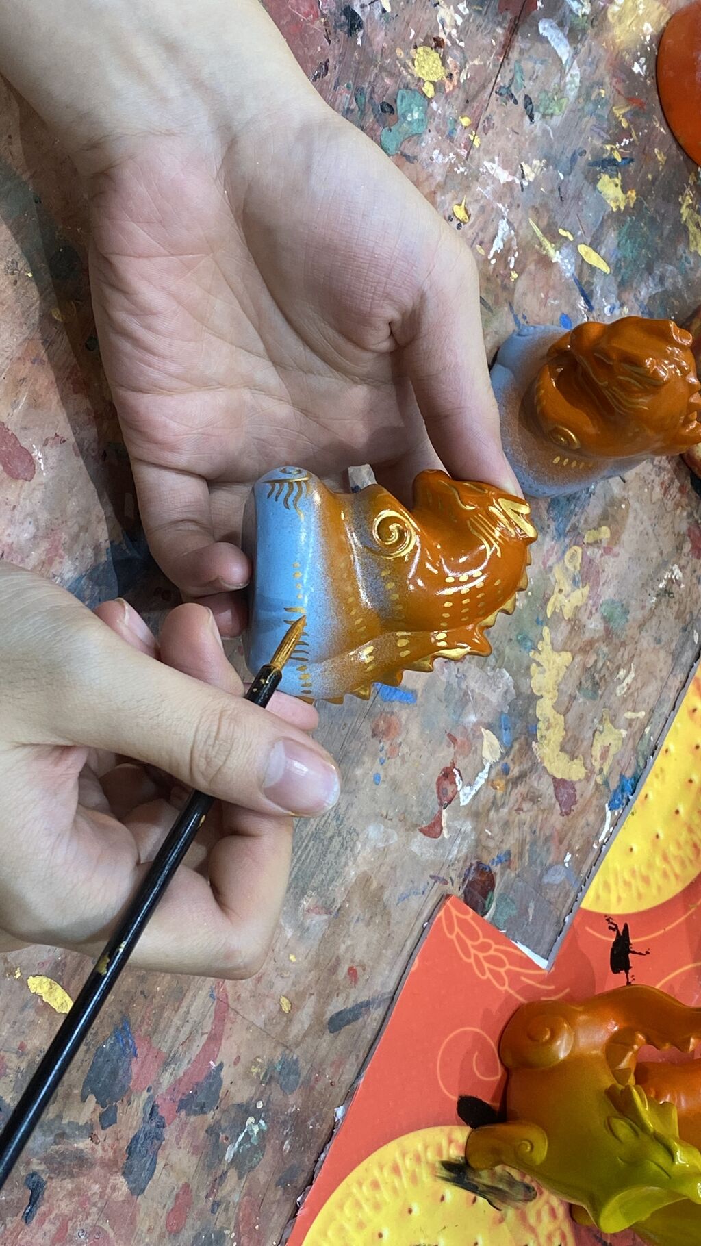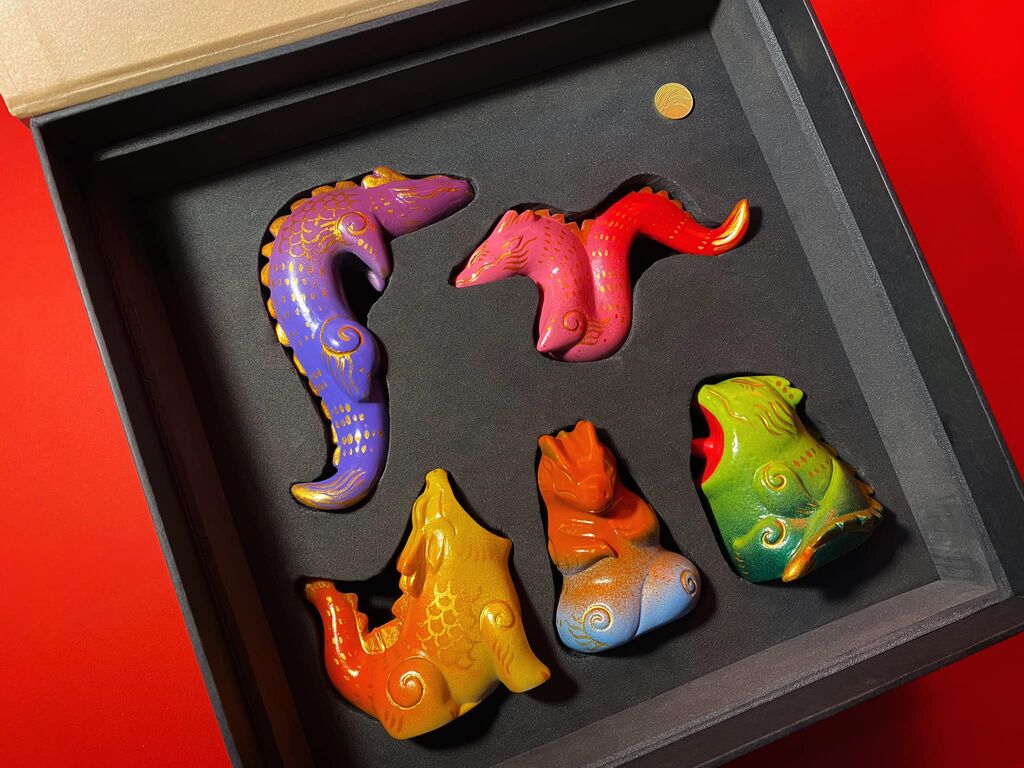"Depuis l’idée initiale, il nous a fallu environ trois mois pour réaliser la première série d’échantillons après de nombreuses étapes : le dessin sur papier, le façonnage avec de la terre reconstituée, et les tests de couleurs", partage l'artiste Duong Duc Manh. "Nous n’avons pas de grande déclaration ou de message, nous pensons simplement à créer cinq dragons amusants pour l’Année du dragon. Ces jeunes dragons sont toujours optimistes et aiment la vie".