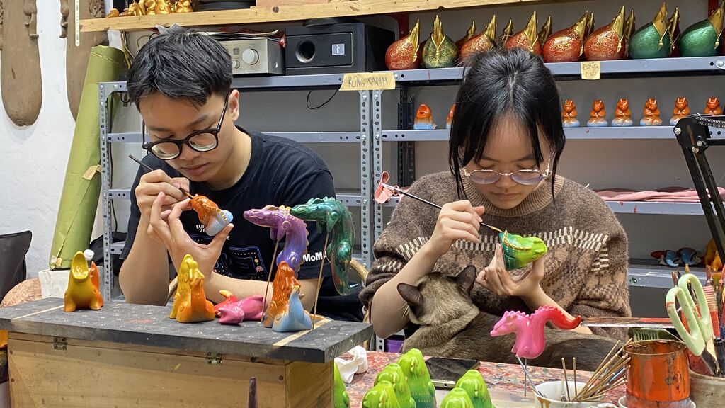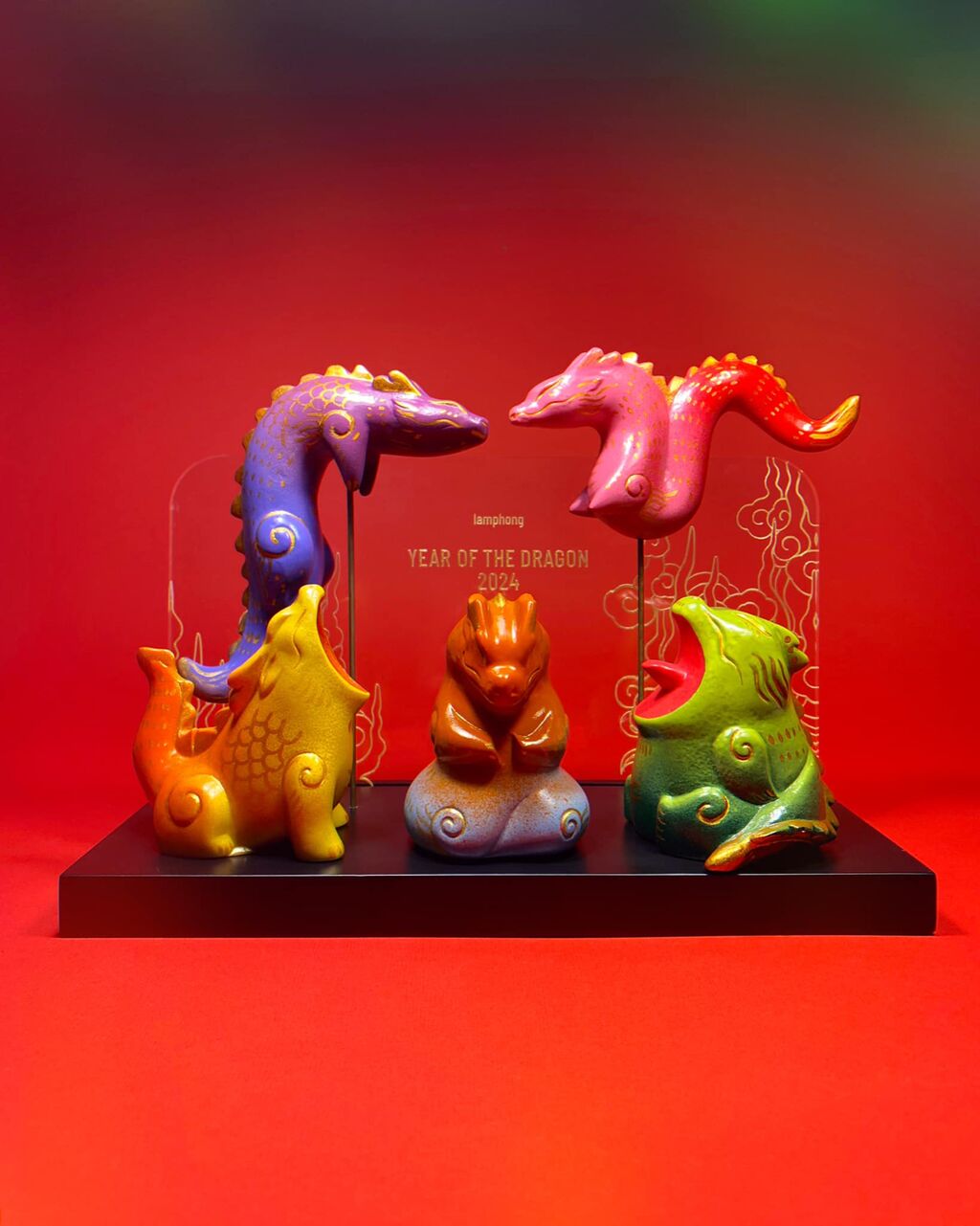 Afin de célébrer le Têt 2024, le studio a créé une série de cinq dragons en s’inspirant de la culture populaire et des motifs de la sculpture artisanale traditionnelle. Ces dragons représentent différentes caractéristiques, états et expressions humaines, tels que la sérénité, la joie, le sommeil, le bâillement et la tristesse.