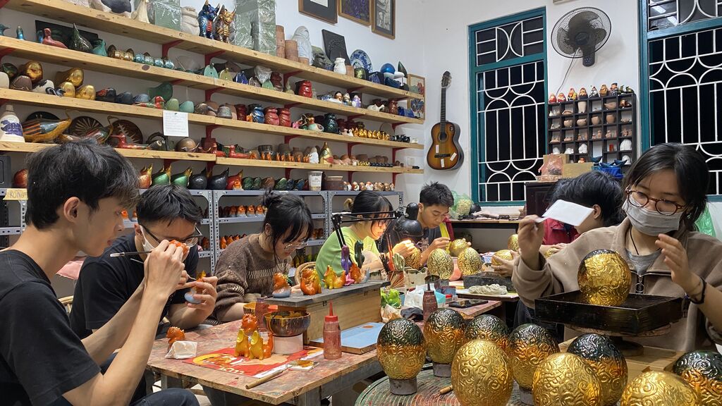 Fondé en 2015, le Lamphong Studio, situé dans la rue Nui Truc à Hanoï, compte actuellement 8 à 10 jeunes artistes résidents ainsi que des collaborateurs étudiants en art.