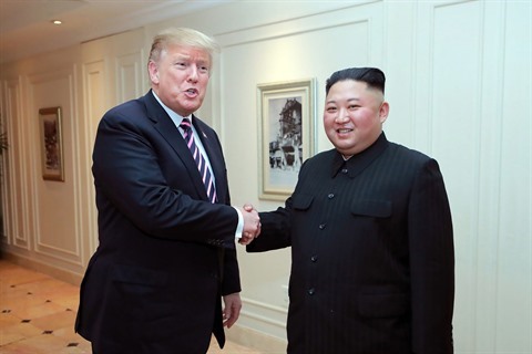 | Le président américain Donald Trump (gauche) et le président de la RPDC, Kim Jong Un, le 27 février à Hanoï. Photo: AFP/VNA/CVN |