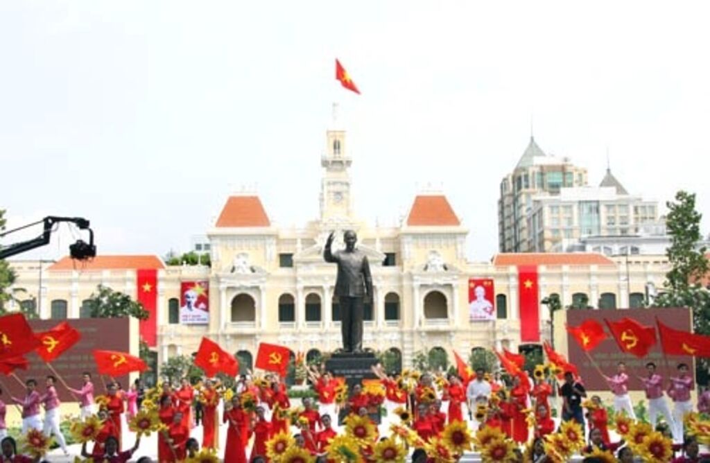 | La statue du Président Hô Chi Minh devant le Comité populaire municipal. |