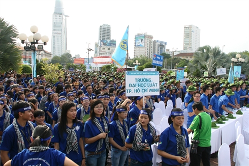 | Des milliers de volontaires lors de la campagne «Été vert de Hô Chi Minh-Ville 2013». |