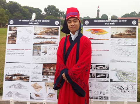 | L'étudiant Vo Truong Giang a remporté le prix Loa Thành pour ses plans d’un futur centre culturel à Ly Son. |