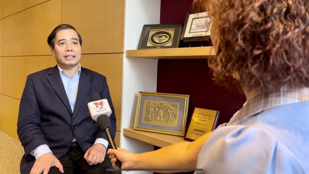 | Le Professeur agrégé Minh Khuong répond à l'interview de la correspondante de la VNA à Singapour. |