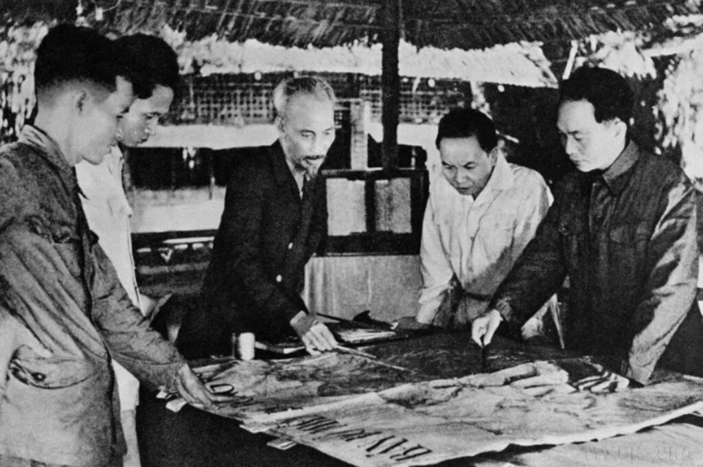| Fin 1953, le Président Hô Chi Minh (centre) et les dirigeants du Parti décident d'ouvrir la campagne de Diên Biên Phu. |