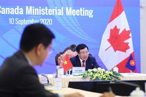 | Le vice-Premier ministre et ministre des Affaires étrangères Pham Binh Minh lors de la conférence des ministres des AE ASEAN - Canada tenue le 10 septembre. |